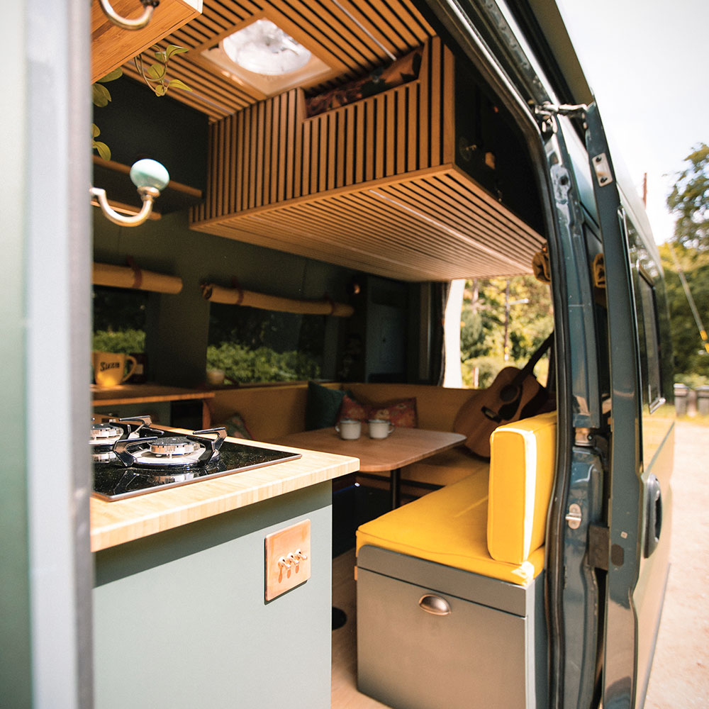 As mentioned, the Pyrenees Layout was the inspiration behind our own vanlife journey. As full-time travellers, we designed this layout to provide the perfect balance of function, comfort and style. Perfect for couples, with an optional third bed for a child, this layout features a flexible sofa bed that opens up the living space, a real kitchen and a walk-through design that allows for simple and effective movement throughout the van.